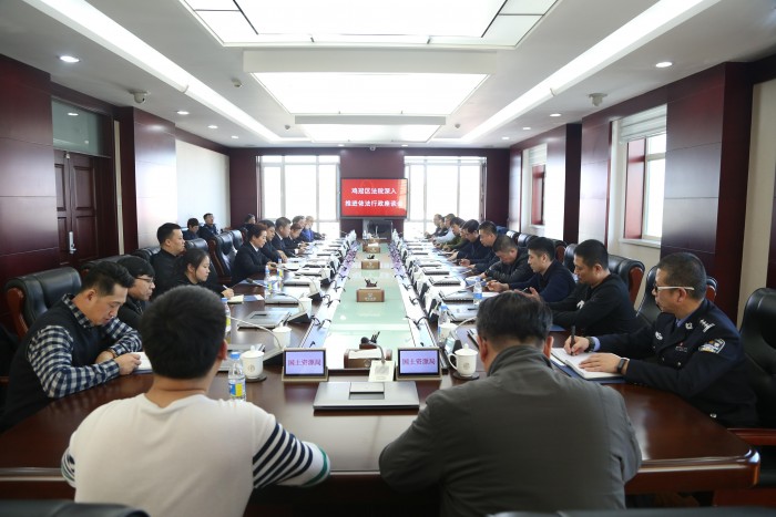 二是采取多种形式,促进依法行政。与鸡冠区公安分局及辖区派出所召开促进依法行政座谈会,对行政应诉中容易出现的各种法律问题等方面进行讲解。双方对行政执法的证据、依据、违法事实的调查等问题进行交流和探讨,为促进依法行政打下坚实基础。