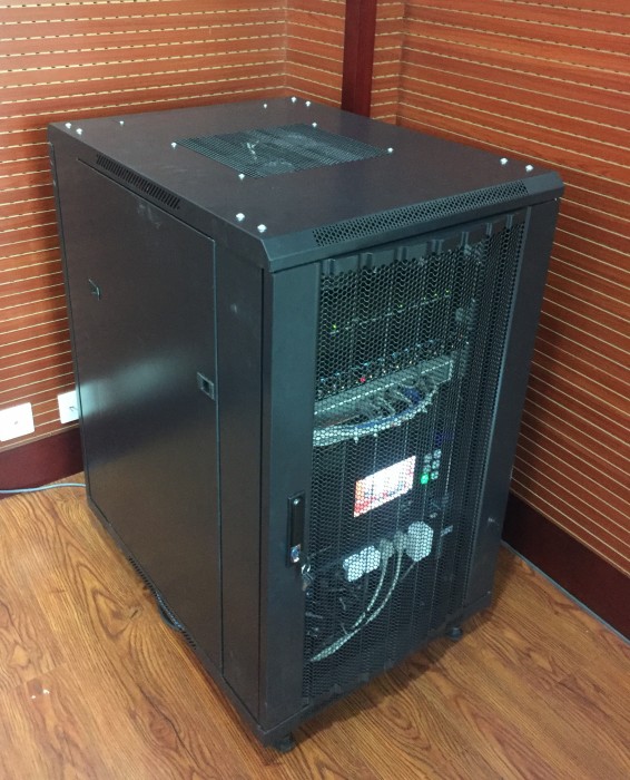 一是法庭设备摆放合理化。十一法庭和少年法庭因是标准化法庭,各类设备以及线缆过多,部分线缆过长无法放置在小机柜内,可能产生安全隐患。因此,信息中心技术人员为了避免影响法官庭审直播活动,利用周末时间加班加点的更换了法庭小机柜,更换后的新机柜比小机柜更加安全、稳定,设备摆放更加合理、美观,同时也便于技术人员进行管理,排查整改安全隐患。