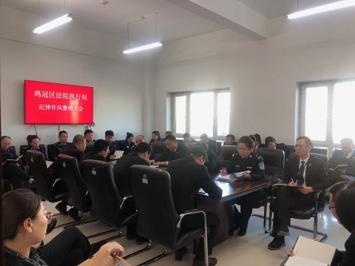 2月13日下午,为严肃纪律作风,规范执行行为,鸡冠区法院执行局召开“执行纪律作风”整顿会议。根据党组书记、院长马宝君在“深化机关作风整顿营商环境”工作推进会上讲话精神,对当前执行工作重点及队伍建设中存在的问题进行深入剖析。执行局全体干警参加会议,副院长李长钢主持会议。