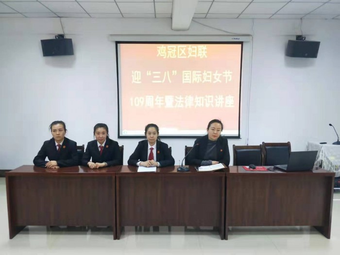 为充分发挥青年文明号的示范引领作用,在三八妇女节前夕,鸡冠区法院民一庭组织女法官与鸡冠区妇联携手开展“传承雷锋精神 巾帼普法进社区”普法讲座活动。女法官们用普法实践雷锋精神,为自己的妇女节送上节日的祝福。