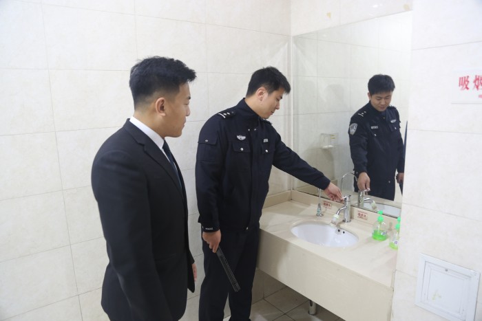 每日下班后,值班法警与司机都会对办公主楼、审判综合楼、诉讼服务中心、审判法庭等区域的每一间办公室,进行地毯式的检查,确保每个办公室电灯、卫生间水源关闭。与此同时,值班干警还要携带巡更棒对全院60个巡更点进行巡视,确保诉讼服务中心、各审判法庭的楼梯间、卫生间、走廊等监控死角位置无外来人员滞留。巡更棒连接电脑后会自动生成巡更列表,每日巡逻检查情况会通过内网公示,全院干警均能通过网站,了解前一天的值班巡更情况。巡逻检查完成情况作为值班干警考核项目之一。