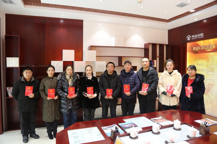 座谈会结束后,鸡冠区法院向参加座谈的人民陪审员赠送了《中华人民共和国宪法》书籍,并带领人民陪审员代表参观了法院标准化法庭建设和党员活动中心。