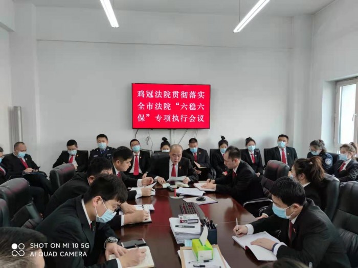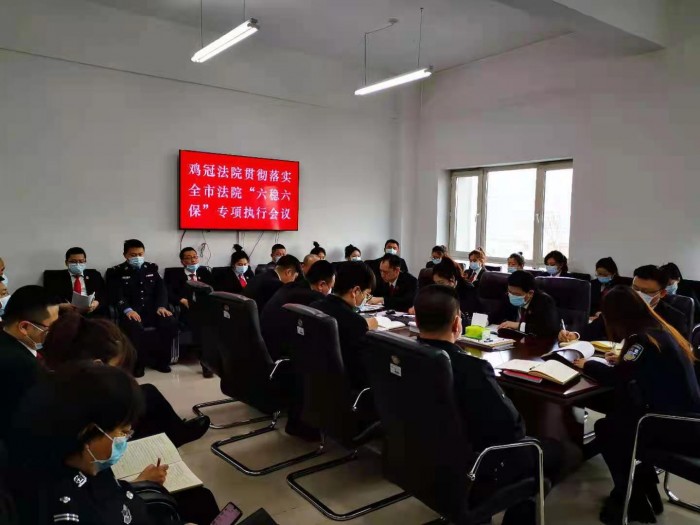 近日,为深入开展好“六稳六保”专项执行行动,鸡冠区法院召开执行工作会议,会议由执行局长刘成主持,执行局全体干警参加会议。