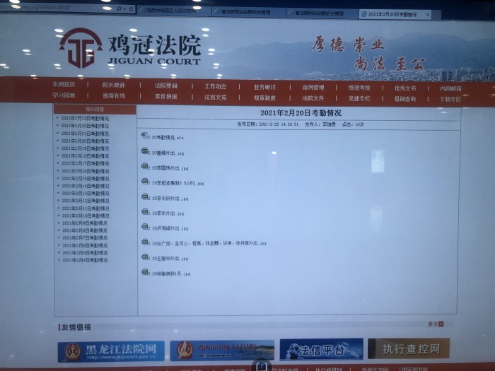 鸡冠区法院政治部坚持从日常考勤工作入手,严格执行省高院关于考勤工作相关要求,进一步加强法院队伍管理,切实增强广大干警的纪律意识和规矩意识,杜绝“慵懒散拖”等不良现象,为全面开展政法队伍教育整奠定扎实的思想基础。