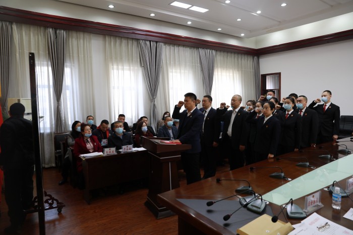 3月10日,鸡冠区人大常委会举行新任命国家工作人员向宪法宣誓仪式,我院新任命的庭长、副庭长参加宣誓活动。