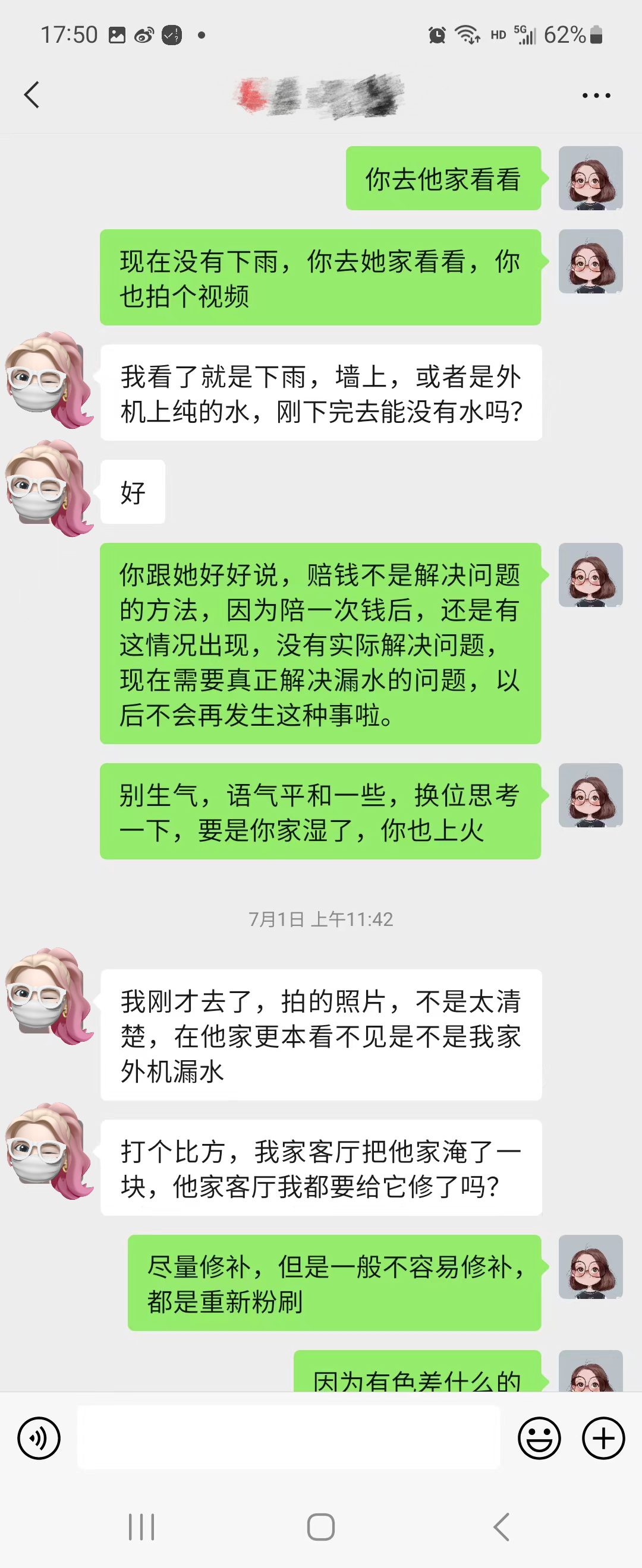 于是,我告知小高无论是否真正漏水,首先提起诉讼要拿出证据。我耐心劝导小高,要先弄清楚到底是什么原因导致漏水,找到漏水点并及时修理处置,才能及时止损、防止漏水情况再次发生。并从换位思考、互谅互让、利弊得失多个角度帮她分析,建议她与邻居理性沟通,一同将问题解决。