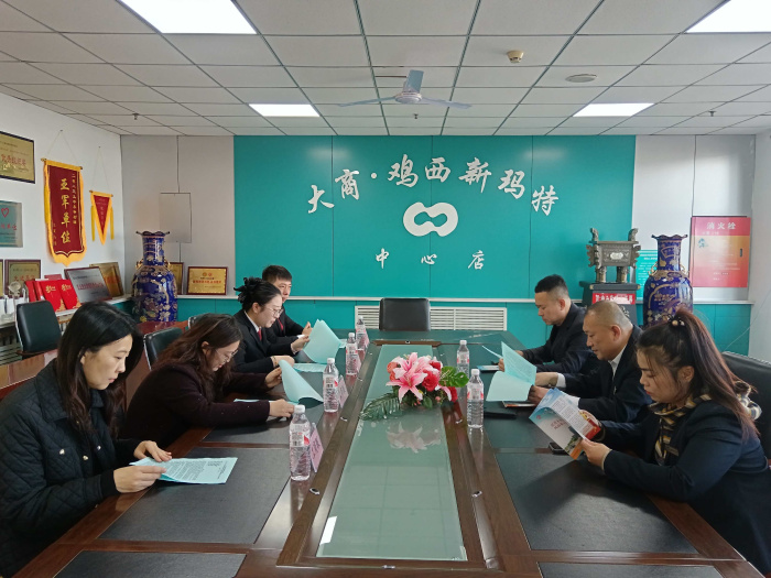 为深入贯彻落实《中华人民共和国民营经济促进法》,切实将法律红利转化为企业发展动能,全力营造保护创新、打击侵权假冒的法治化营商环境。近日鸡冠区人民法院与鸡冠区工商业联合会联合召开专题座谈会,鸡冠区人民法院民二庭庭长侯琳联合区工商联主席王新坤、副主席孙伟,走访大商新玛特有限公司,围绕法治护航民营经济高质量发展路径及保护创新开展座谈会。