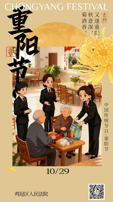 岁岁重阳,情暖人心。在重阳节到来之际,鸡冠区人民法院向所有老年人致以节日的问候与美好的祝福!