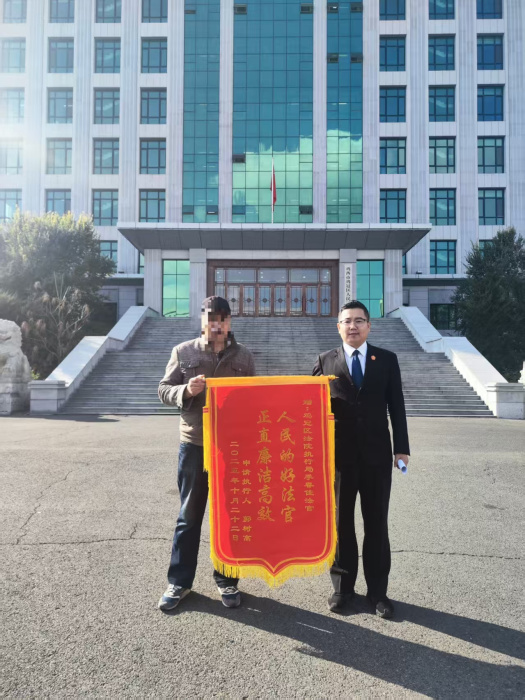 近日,申请执行人郭某某将一面写有“人民的好法官 正直廉洁高效”的锦旗送到鸡冠区人民法院执行局,紧紧握住执行干警的手激动地说:“我们都没抱有多大的希望,没想到法官真的帮我们执行回来一部分,真是太感谢了!”锦旗上的鎏金大字,不仅承载着当事人对执行工作的认可与赞誉,更彰显了法院执行局在“雷霆2025·煤城风暴”专项行动中攻坚克难、为民司法的坚定决心。
