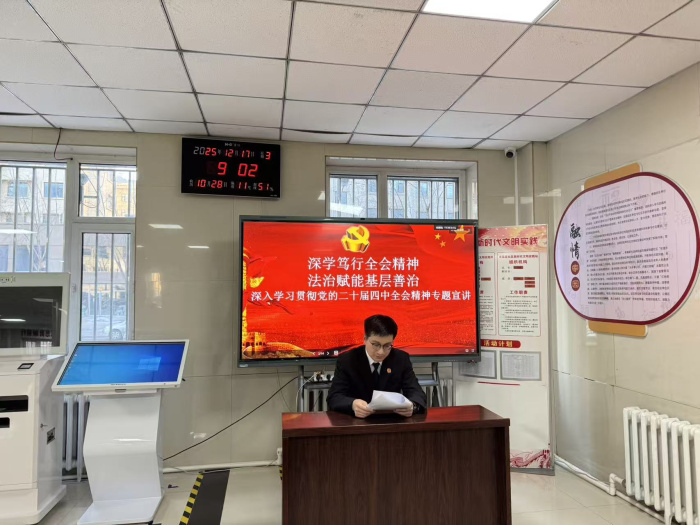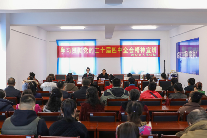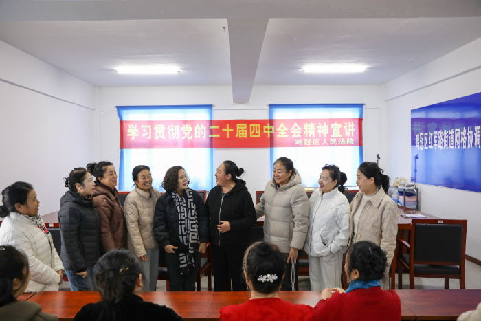 为深入学习贯彻党的二十届四中全会精神,推动习近平新时代中国特色社会主义思想在司法领域落地生根。近期,鸡冠区人民法院精心组织开展了一系列宣讲活动。宣讲活动紧紧围绕党的二十届四中全会的全局意义和深远历史意义,以及《习近平谈治国理政》第五卷所蕴含的马克思主义中国化时代化最新成果,由院领导带头走出机关、深入基层,面向企业职工、社区居民、农村村民、学校师生、机关工作人员及军人等多元群体,实现了宣讲全覆盖,还积极策划并邀请全国人大代表李广丽同志深入到党建联系点赛洛城社区,面向辖区居民举办了一次内涵丰富的党的二十届四中全会精神专题宣讲会。活动旨在通过精准化宣讲统一思想、凝聚共识,将党的创新理论与法治精神传递至基层一线,为辖区高质量发展注入司法动能。