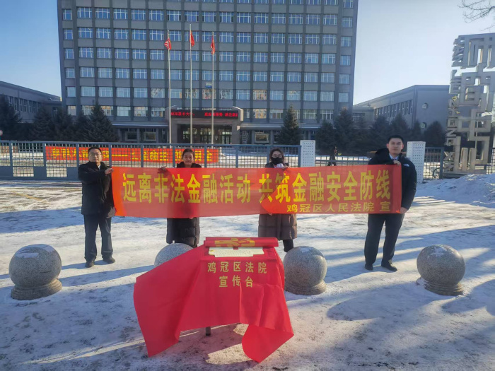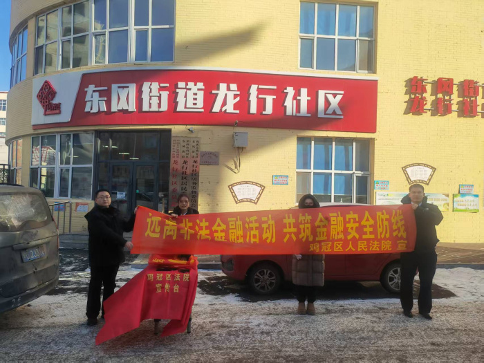 为切实提升社会公众金融风险防范意识,保护人民群众财产安全,维护区域金融秩序稳定,近日,鸡冠区人民法院刑事审判庭主动延伸司法职能,组织干警深入辖区学校及居民社区,集中开展以“守护钱袋子·护好幸福家”为主题的防范非法金融活动专项普法宣传。
