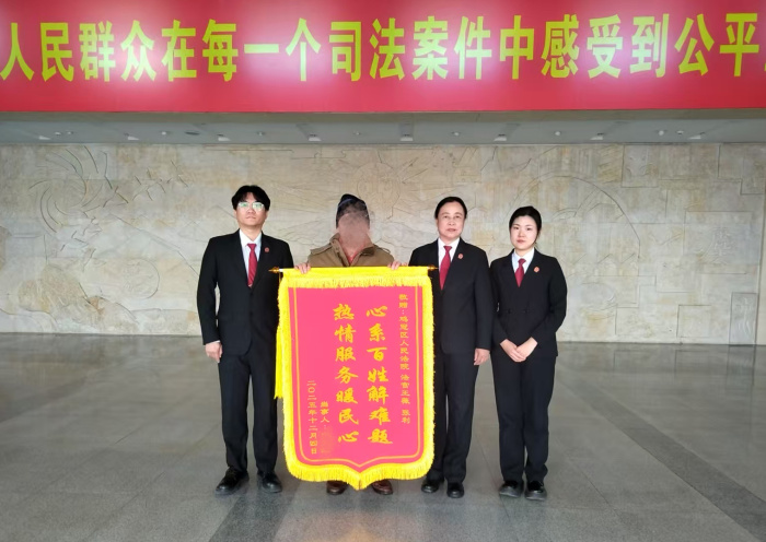 2026 年 1 月份某一天,在漫天飞舞的雪花中,白某某将一面锦旗送到了鸡冠区人民法院,感谢立案庭法官耐心调解,让一起法定继承纠纷得到了圆满的解决,取得了很好的社会效果。