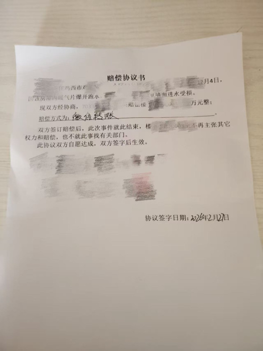 本案的当事人李某与唐某,是鸡西市某小区同一单元朝夕相处的上下楼邻居,平日里抬头不见低头见,本该和睦共处。可2025年12月,一场突如其来的意外打破了这份平静——唐某家中暖气管突然爆裂漏水,冲击力较大的热水流顺着楼板倾泻而下,将楼下李某刚装修未久的新家彻底浸泡。墙面被热水冲泡后大面积反碱、起皮脱落,衣橱柜门、床体因泡水开裂变形,各种生活用品尽数损毁,电路设施也因短路烧毁,满屋潮气混杂着刺鼻霉味,让李某的家彻底失去了居住条件,原本温馨的新居变得满目疮痍,李某的生活也因此被打乱。
