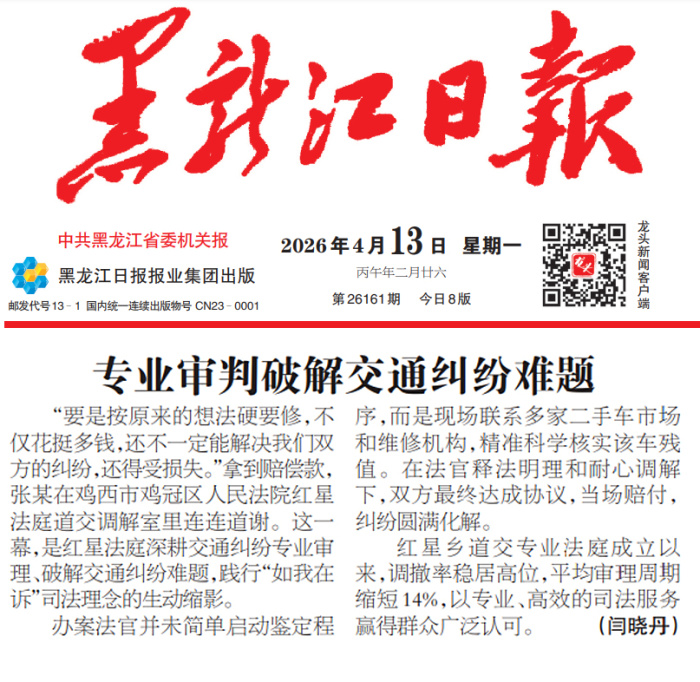 【媒体刊播】《黑龙江日报》刊发鸡冠区法院道交法庭审判工作简讯