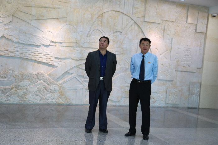 北安市法院一行详细了解了鸡冠区法院浮雕的设计理念及深刻含义,参观了审判综合楼大厅、执行指挥中心、诉讼服务中心、12368诉讼服务平台、法院文化展板、数字化审判法庭、法警指挥中心、廉政文化长廊、党员活动室、院史室暨荣誉室、图书馆等地点,并在电教室观看了专题片。鸡冠区法院常务副院长王鹏举对我院的数字化审判法庭、文化建设的理念、司法公开的举措等工作做了详细的介绍。