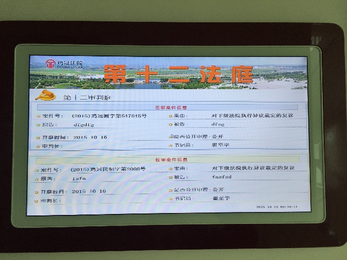 二是启用庭审信息公示系统。鸡冠区法院在所有审判法庭门口都安装了庭审信息公示显示屏,在显示屏上可以了解到在审案件信息和候审案件信息的详细信息,保证了庭审案件的公开性。