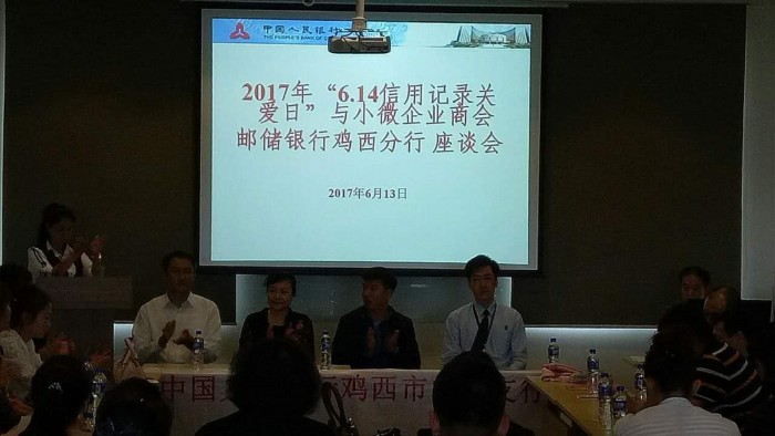 6月13日下午,鸡冠区法院选派法官王剑参加了2017年“6.14信用记录关爱日”与小微企业商会邮储银行鸡西分行座谈会。参加本次座谈会的有中国人民银行、中国邮政储蓄银行,以及小微企业家们。