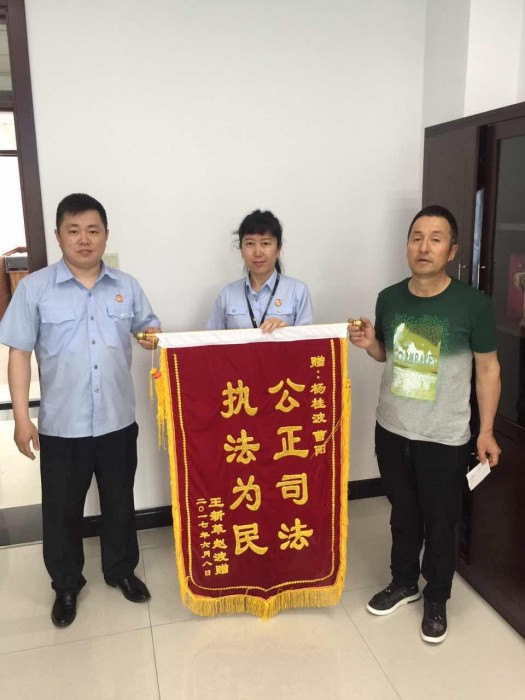 6月19日,鸡西市鸡冠区仁和村村民赵某将一面写有“执法为民、公正司法”的锦旗送到鸡西市鸡冠区人民法院立案庭,以表达对立案庭法官及书记员的感激之情。