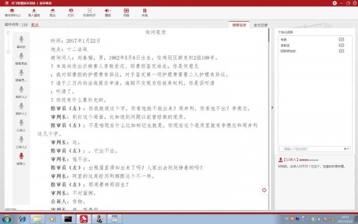 二是探寻多种方式结合,深化“智慧”应用效果。为了提高信息化应用水平,信息中心对刑庭书记员进行了重点培训,并针对刑事案件的特点进行了系统专业性指导,大大提高了刑事法庭审判的效率;通过共同研讨采用多种方式有机结合,总结快捷简便操作经验,从而有效提高庭审笔录的速录速度。现场测试率完全满足了刑事案件审理的要求,进一步深化了庭审系统“智慧”的应用效果。