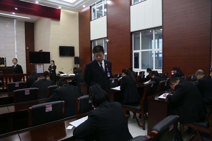 近日,鸡冠区法院举行了全院书记员分类定级笔试考试。鸡冠区法院常务副院长张晓勇带领考核组对整个考试过程进行全程监督。全院审执部门41名书记员参加了考试。