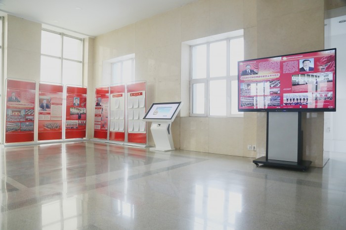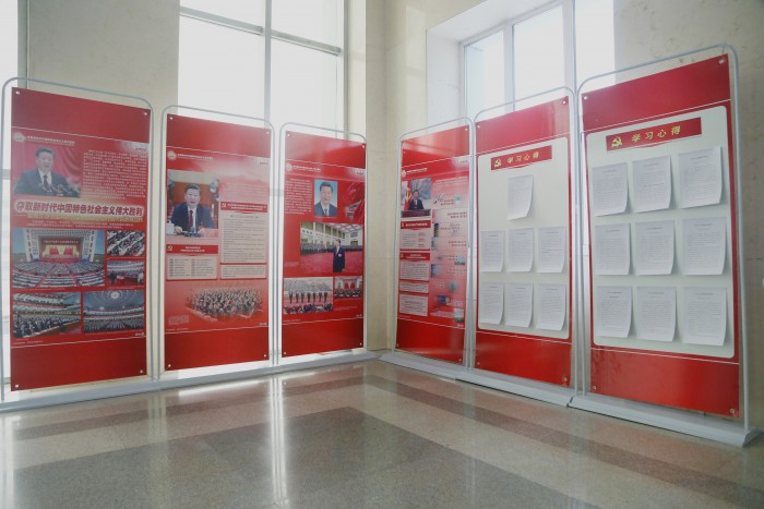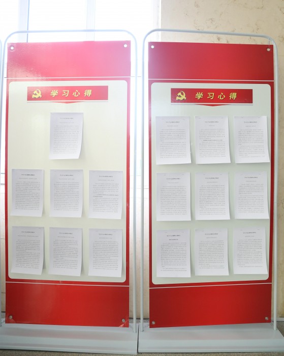 近日,鸡冠区法院二楼大厅出现了一道靓丽的风景线——十九大精神宣传图板。正红的板图底色,配上十九大会议现场图片、会议主题和报告主要内容,将伟大的历史瞬间记录下来。同时,专栏设置了鸡冠区法院领导班子和各党支部学习十九大精神的心得体会,电子屏循环展播法院学习十九大精神活动图片,营造了浓厚的学习宣传贯彻十九大精神的氛围。