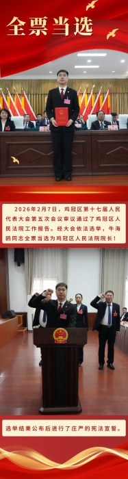 | · | 牛海鸥同志全票当选鸡冠区人民法院院长! | (2026-02-09) |